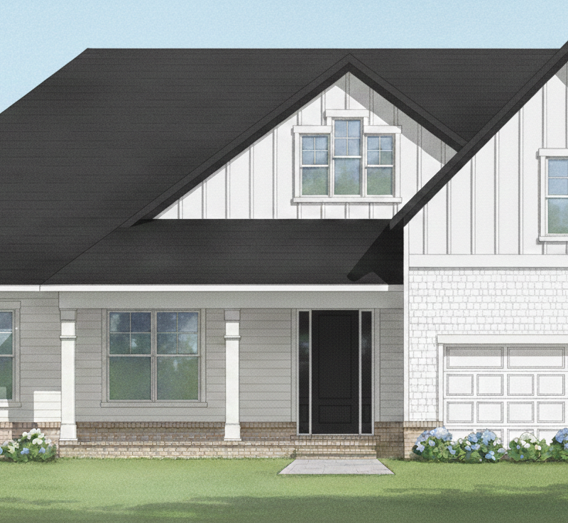 The Otter Home Plan is an open concept home that features 3 bedrooms, living space, and covered front and back porches. The finished room above the garage provides a bonus space, and an additional full bath.